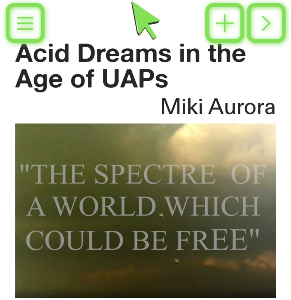 Acid Dreams in the Age of UAPs, Cursor Magazine ✣ Why present day institutional attention being directed towards UAPs (also known as UFOs) is a harbinger and omen of the burdgeoning Fisherian acid zeitgeist.