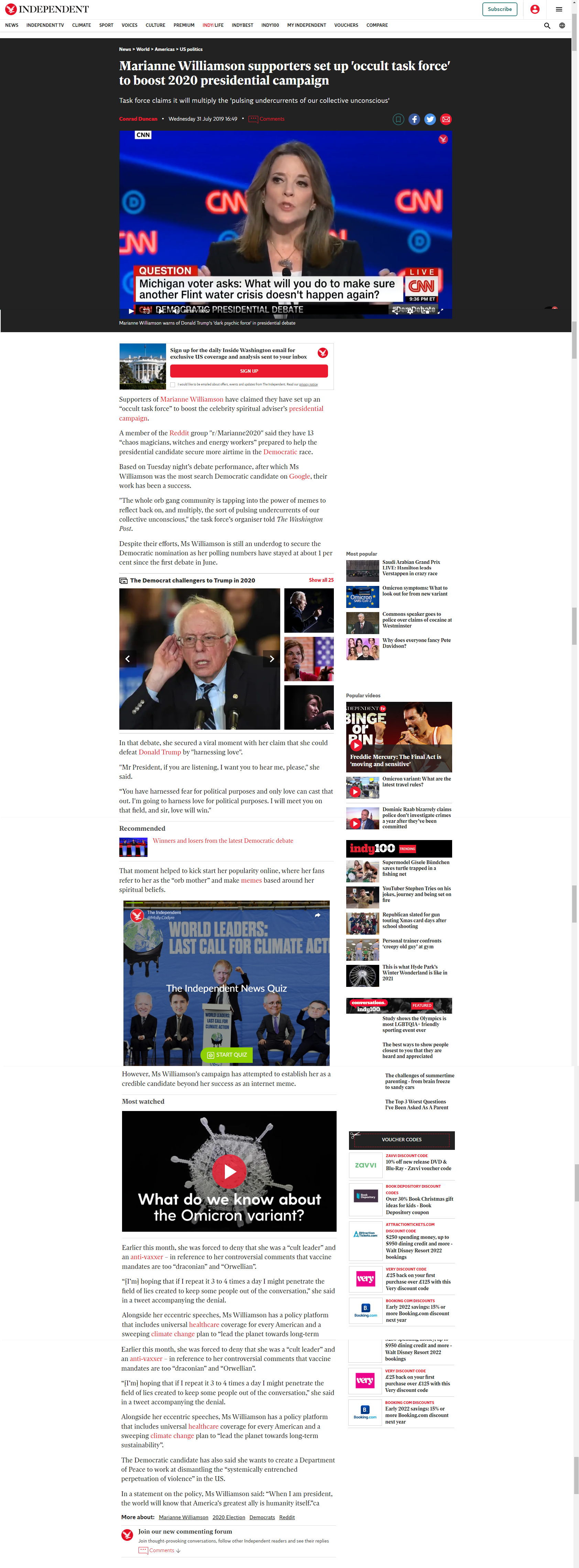 In 2019 I mobilized a group of occultists in an online sphere originally started as a joke page to make memes mocking 2020 democratic primary candidate Marianne Williamson. Marianne Williamson was an early field candidate who met the threshhold for the first round of Democratic debates and espoused the dangers of dark psychic forces on the debate stage, becoming known ironically as the orb queen in the online sphere, a reference to the crystal ball emoji. The occultists pulled from the group to perform the social sculpture ritual gesture begun as her ridiculers, parsing her quotes to make meme content about the absurdity of her esoteric discourse delivered plainly on a stage designed to isolate the US’s next democratic presidential candidate. In the process of making memes to laugh at the orbqueen the mood of the online group shifted from ironic to post-ironic. The goal of the occult working was to get Marianne Williamson airtime in a bid to advance the proliferation of the occult zeitgeist and accelerate our transition into the Hyperborean Age, by bringing visibility of discussion of esoteric topics to the presidential stage for the first time in US history. This ritualistic social sculpture gesture was reported on in The Hill and The Independent, and mentioned in the Washington Post and The New York Times. The documentation in the form of these reports in major global news outlets are the only tangible fragments that remain of the working.